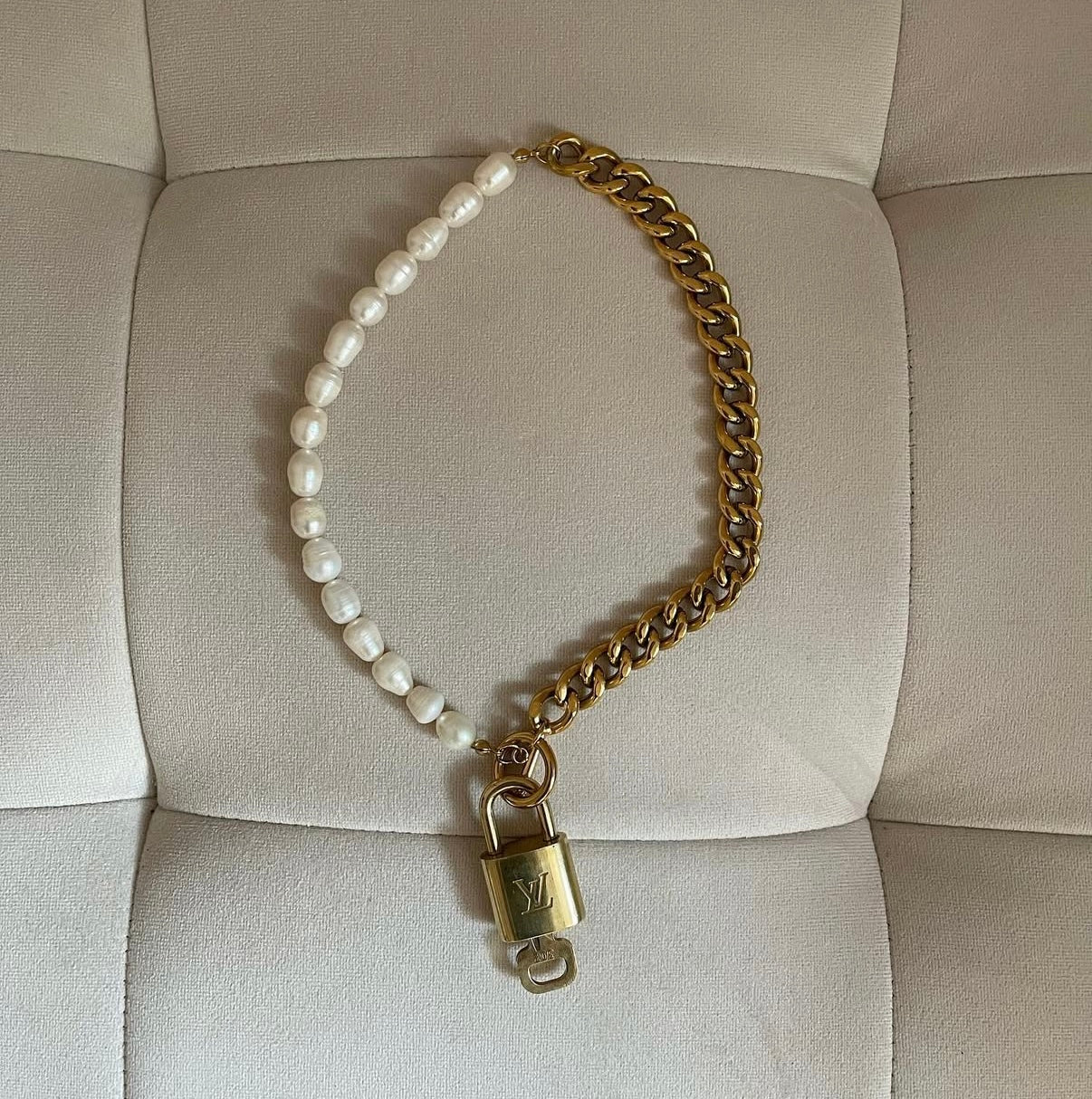 Authentic Reworked Louis Vuitton Lock & Key Necklace